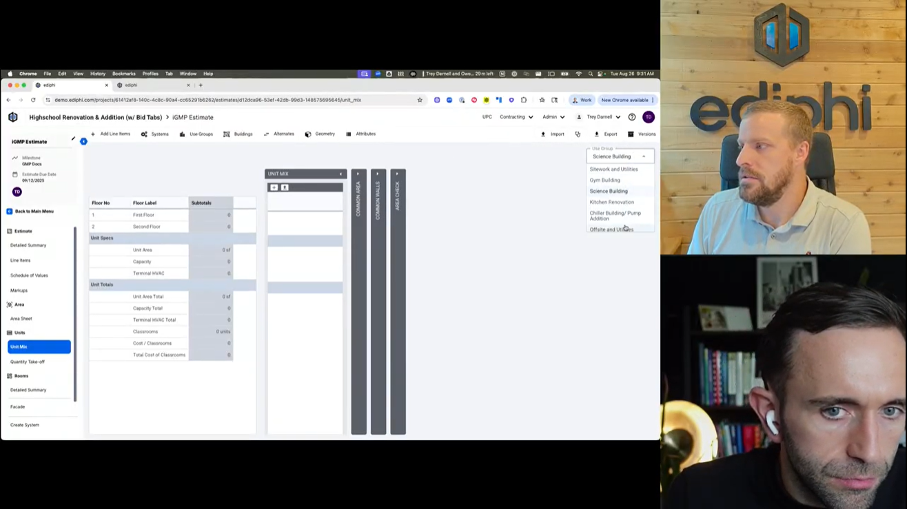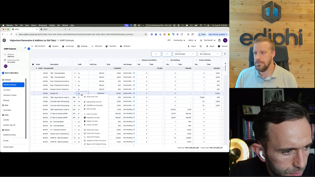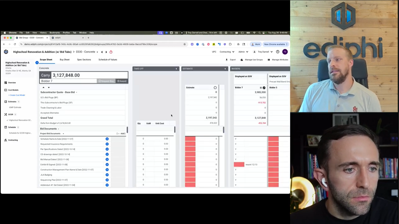 Ediphi is an all-in-one pre-construction platform that unifies estimating, GC/GR modeling, cost modelling, and bid leveling, cost, modeling and bid leveling from concept through final buyout.